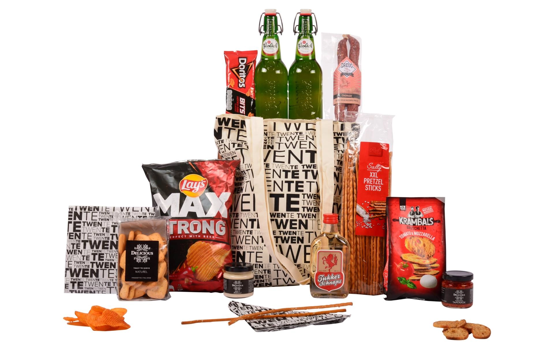 Momenteel hebben wij vooral streekproducten uit onze regio in het assortiment. Dit zijn streekproducten uit de Achterhoek en Twente. Uit de Achterhoek hebben wij ook verschillende non-foodproducten zoals een paraplu, een ijskraber, een kaartspel en een bieropener met de Achterhoekse vlag, maar ook een leuk boekje met Achterhoekse wijsheden. Voorbeelden van lokale foodproducten uit de Achterhoek en Twente zijn heerlijke aardappelchips, een lekkere notenmix en echte Twentse droge worst. Maar lokale kerstpakketten zijn voor elke regio denkbaar. We werken met leveranciers door het hele land waardoor we snel en makkelijk kunnen schakelen en wij altijd aan lokale producten kunnen komen. Deze producten zijn vaak duurzaam geproduceerd waardoor je een duurzaam lokaal kerstpakket kan gaan samenstellen. Wij gaan de uitdaging graag aan!