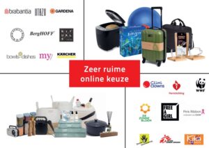 Het Cadeau4Jou assortiment is enorm. Je werknemer of relatie krijgt de keuze uit honderden verschillende geschenken. Zo weet je zeker dat er voor iedereen iets leuks bij zit. De geschenken zijn verdeeld over een aantal categorieën: cadeaus, belevenissen, tijdschriften, boeken, cadeaukaarten, goede doelen en duurzaam. Ze voegen hun favorieten toe aan de wensenlijst of plaatsen de artikelen direct in de winkelwagen. Van etentjes en excursies tot hoge kwaliteit woondecoratie of een luxe Rituals pakket, de opties zijn eindeloos. Wanneer de werknemers met het aantal punten, afhankelijk van het beschikbare budget, een artikel hebben gekozen wordt deze kosteloos verzonden naar het huisadres. Dit kan net zo vaak, totdat het puntenaantal is uitgegeven. Met keuze uit luxe merken zoals Brabantia, Gardena, BergHOFF of Karcher zit er altijd iets tussen wat in de smaak valt. En met de mogelijkheid om geld te doneren aan verschillende goede doelen, wordt het geld altijd goed besteed. Zo kan het terecht komen bij De Hartstichting, WWF, De Dieren Bescherming, Kika en nog veel meer.