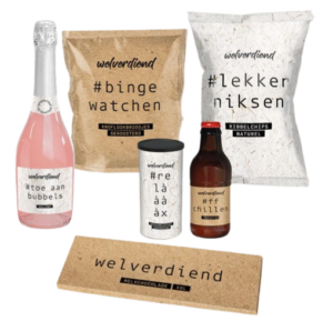 Themalijnen die de dankbaarheid en waardering overdragen passen daarom erg goed bij jouw zorgmedewerkers. Met de themalijn Proud sta je stil bij de mooie momenten van het afgelopen jaar en de mensen die zich inzetten voor jouw organisatie. Je verrast je medewerkers met smakelijke producten die luxe uitstralen. Een chique lijn die feestelijk is dankzij de kleurrijke accenten en de boodschap ‘Proud’. Bovendien geef jij je medewerkers door de teksten op de verpakkingen een extra boodschap mee. Een andere themalijn die een perfecte blijk van waardering meegeeft is Welverdiend. Je hebt het hele jaar keihard gewerkt en een paar heerijke relaxte feestdagen verdiend. Lekker onderuit op de bank met een dekentje. Met de producten van Welverdiend sluit je het jaar in alle rust af om vol frisse energie aan het nieuwe jaar te beginnen.