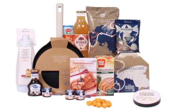 Een knipoog in de naam, maar o zo serieus in inhoud. Met dit kerstpakket maak je in een handomdraai de lekkerste pannenkoeken. Dit complete pakket bevat alles wat je nodig hebt om direct aan de slag te gaan. Van een kwalitatieve Gusta pannenkoekenpan tot een handige Alpina beslagverdeler met whisk ball. En met de bijgeleverde pannenkoekenmix, toppings, receptenboekje en zoete extra’s wordt het bakken én tafelen een feest. Voeg daar een glas Schulp sap of een snackmomentje bij en de pannenkoekenavond is compleet!