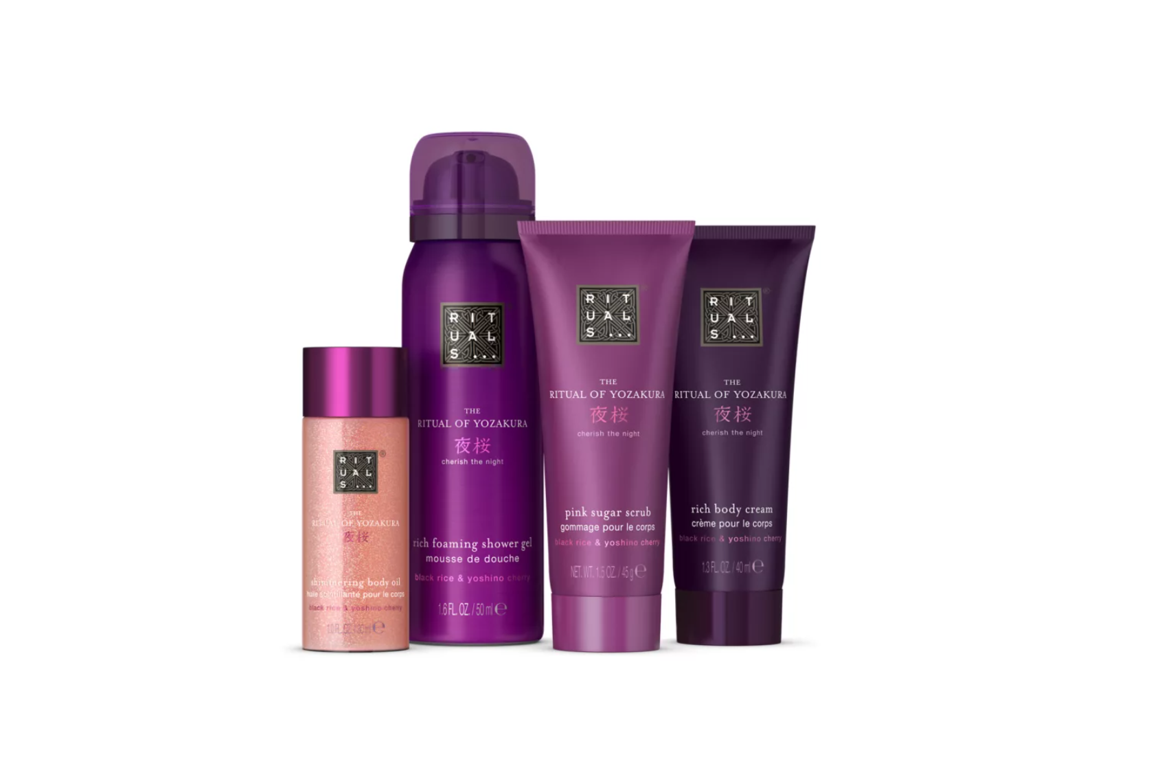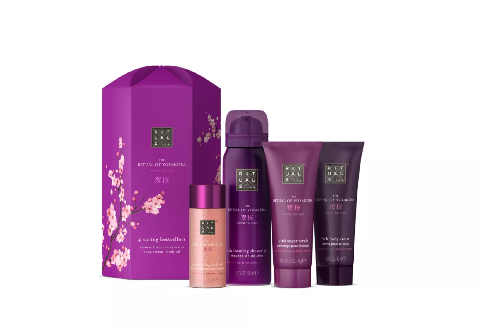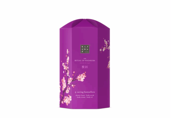 Deze gift set is het perfecte cadeau voor jezelf of iemand van wie je houdt. De set bevat een doucheschuim, bodycrème, bodyolie met shimmer en roze suikerscrub, allemaal verrijkt met zwarte-rijstextract en Yoshino kers. Deze collectie is geïnspireerd door de Yozakura-traditie om in de nachtelijke uren de kersenbloesem te bekijken. Het heeft een prachtige geur met noten van witte bloemen, cederhout, tonkabonen, vanille en vetiver.